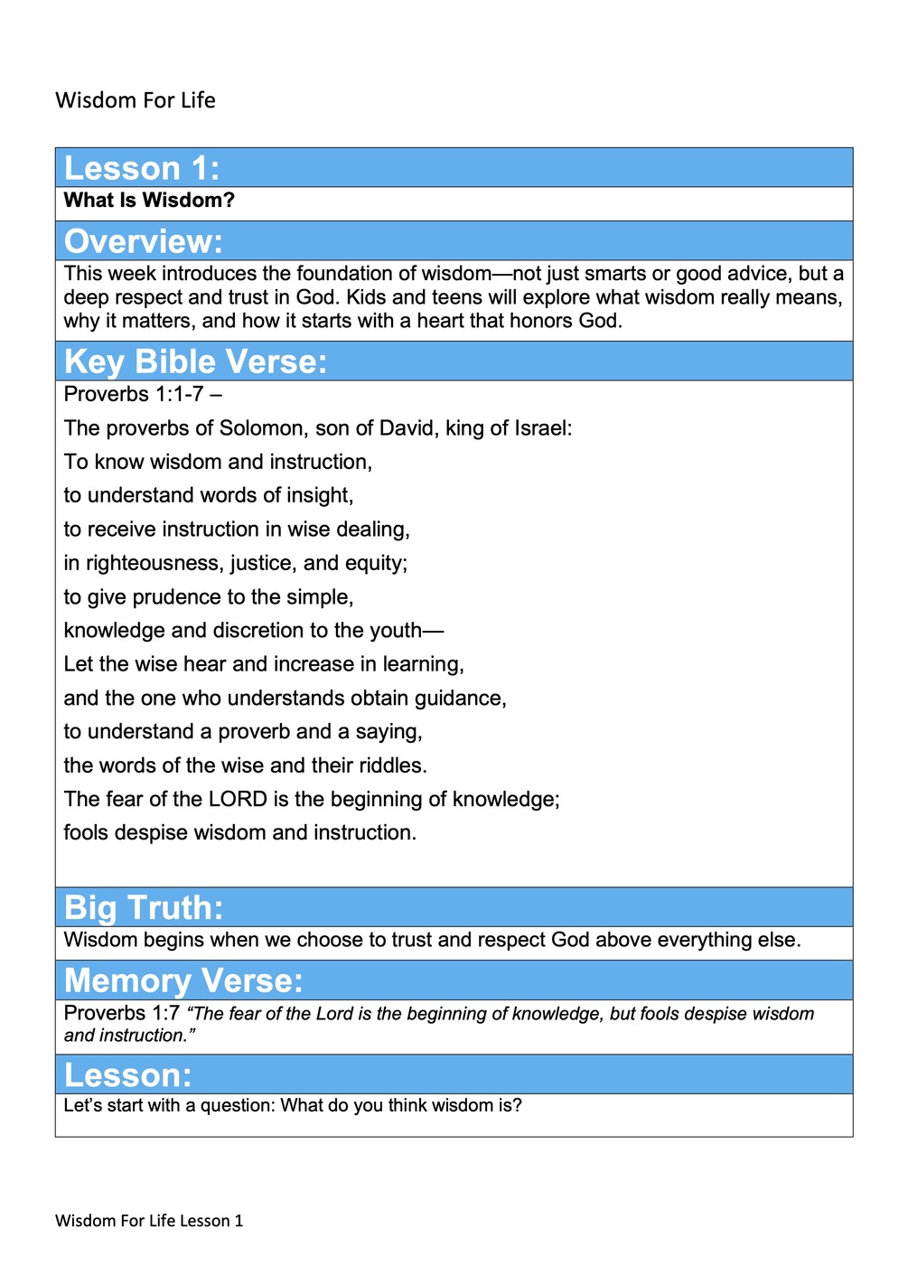 Wisdom for Life: 8-Week Bible Study Curriculum for Teens (Printable)